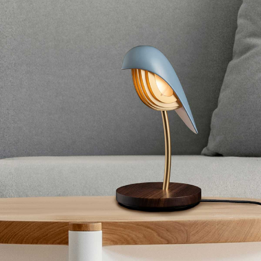 Marke DAQI CONCEPT Modell Bird – Indigo Blue Gewicht 390g Dimensionen 105 × 105 × 190 mm Materialien Vogel aus blauem, handgearbeitetem Porzellan und goldfarbenem Metall auf einem Sockel aus Walnussholz Funktionen LED-Tischlampe mit 3 Helligkeitsstufen und stufenloser Helligkeit per Touch Stromversorgung Kabel und Netzteil (230V)