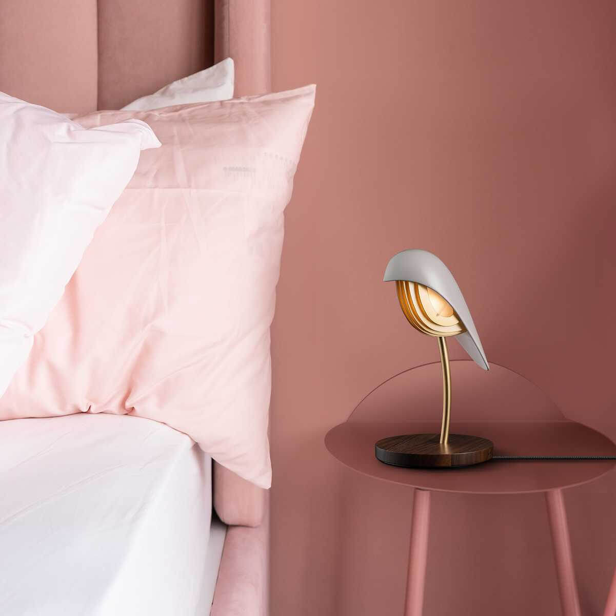 Marke DAQI CONCEPT Modell Bird – Almond Beige Gewicht 390g Dimensionen 105 × 105 × 190 mm Materialien Vogel aus beigem, handgearbeitetem Porzellan und goldfarbenem Metall auf einem Sockel aus Holz Funktionen LED-Tischlampe mit 3 Helligkeitsstufen und Stufenloser Helligkeit per Touch Stromversorgung Kabel und Netzteil (230V)