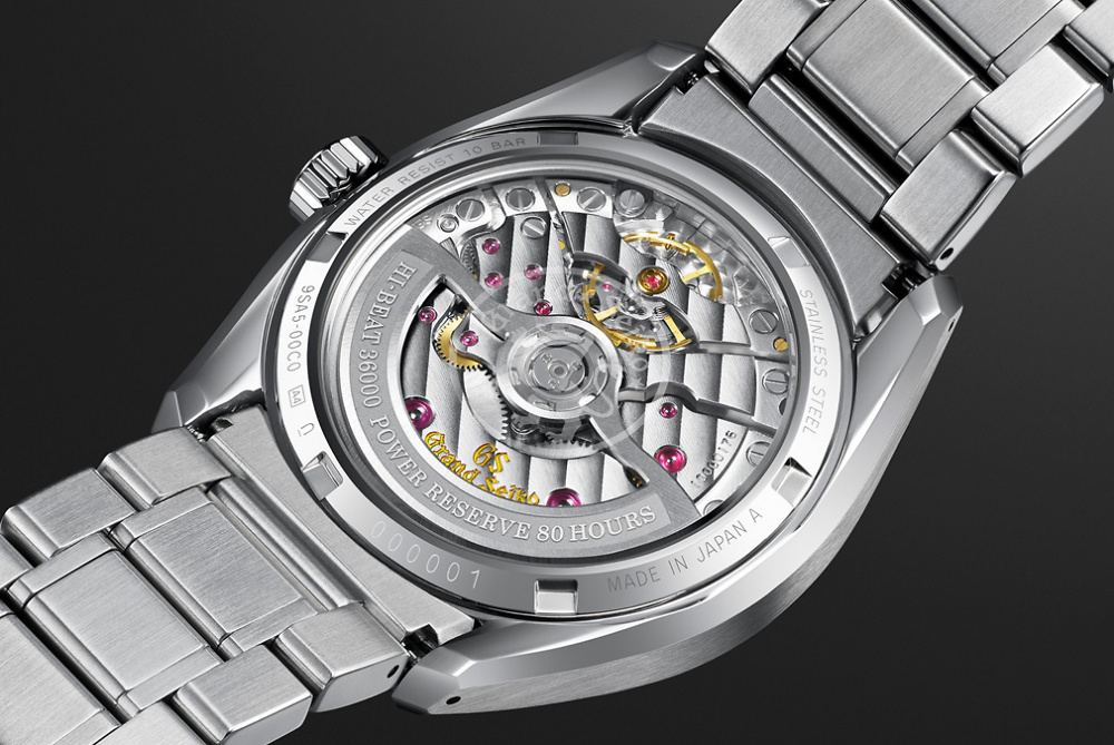 Angetrieben wird die High-Beat-Uhr vom revolutionären Kaliber 9SA5, das dank seiner erhöhten Leistungsfähigkeit eine Gangreserve von 80 Stunden bietet. Das im Jahr 2020 erstmals vorgestellte Kaliber 9SA5 umfasst drei bedeutende Entwicklungen: die völlig neue Doppel-Impuls-Hemmung, Grand Seikos freischwingende Unruh und das horizontale Räderwerk, die zusammen einen neuen Standard im Bereich der High-Beat-Uhrmacherei setzen.
