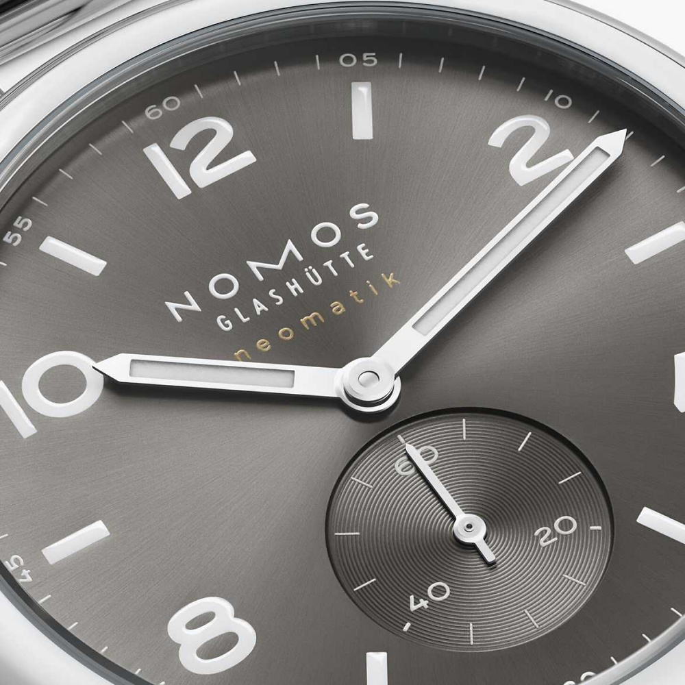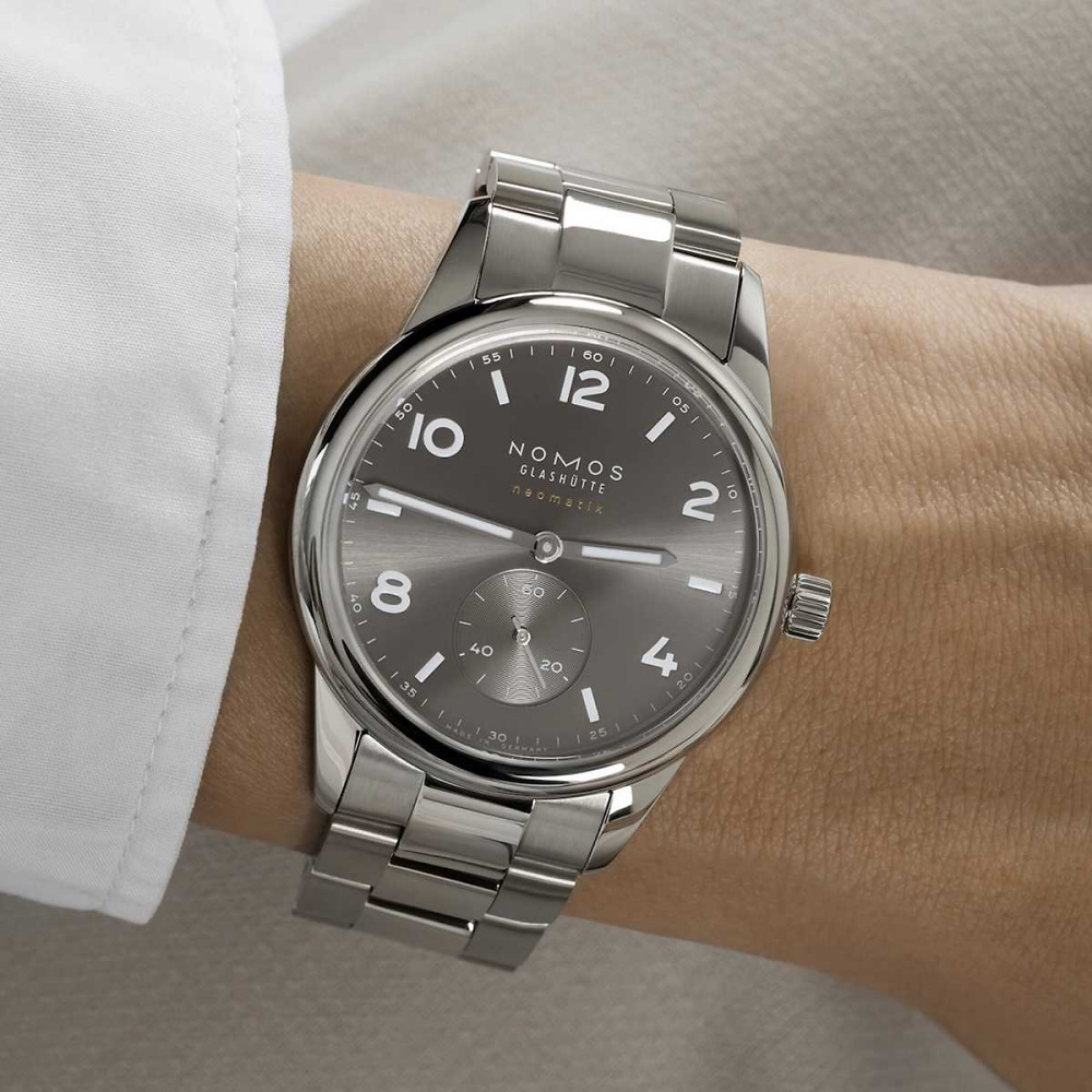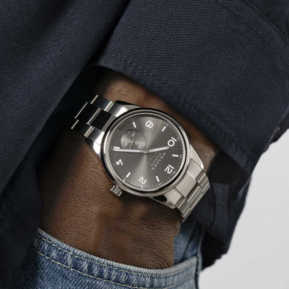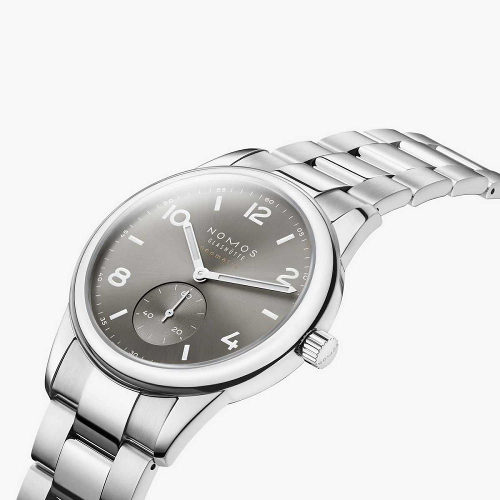 Kraftvolle Eleganz in jeder Facette: Der Strahlenschliff des galvanisierten Zifferblatts lässt das raffinierte Rauchgrau mit beeindruckender Tiefe erstrahlen und verleiht der Uhr eine starke, ausdrucksvolle Präsenz. Diese sportliche NOMOS-Automatikuhr steht für zeitlosen Stil und wahre Kennerkunst – sie setzt glänzende Akzente, ohne zu übertreiben. Das robuste Edelstahlgehäuse, kombiniert mit einem polierten und satinierten Gliederarmband, macht die Club Sport neomatik 39 Smoke zu einem Highlight für jedes Handgelenk. Wasserdicht bis 20 atm und mit einer Höhe von nur 8,5 Millimetern ist sie aussergewöhnlich flach und dennoch perfekt für den aktiven Lebensstil. Im Inneren sorgt das in eigener Manufaktur gefertigte Automatikkaliber DUW 3001 mit dem hauseigenen NOMOS-Swing-System für präzise Zeitmessung.