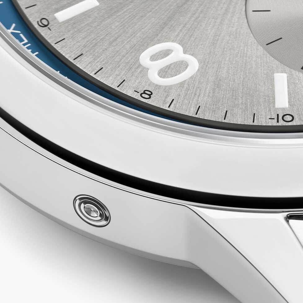 Weltzeit neu interpretiert: widerstandsfähig, leuchtend, klar strukturiert und stilvoll. Das ultraflache neomatik-Kaliber DUW 3202 ermöglicht eine Gehäusehöhe von unter 10 Millimetern – damit zählt die Club Sport neomatik zu den elegantesten und flachsten Weltzeituhren überhaupt. Die Zeitdifferenzen zwischen der gewählten Stadt und allen weiteren Zeitzonen sind sofort ablesbar, der Drücker bei 2 Uhr macht die Bedienung besonders angenehm. Das rhodinierte Zifferblatt mit Sonnenschliff steht für sportliche Präzision und moderne Ästhetik.