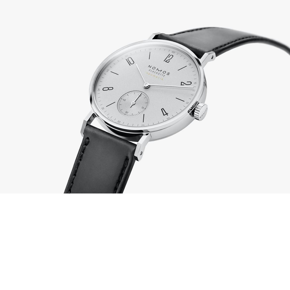 Mit Tangente neomatik platingrau präsentiert NOMOS Glashütte eine stilvolle Automatikuhr, die technische Finesse mit höchster Fertigungsqualität vereint. Das neomatik-Kaliber DUW 3001 überzeugt durch seine besonders flache Bauweise – bei nur 3,2 Millimetern Werkhöhe passt es mühelos in das schlanke Edelstahlgehäuse. Ein Rotor mit beidseitigem Aufzug nutzt die Bewegungsenergie effizient und schützt die Aufzugsfeder durch automatisches Stoppverhalten bei Vollaufzug – für langanhaltende Präzision. Das hauseigene NOMOS-Swing-System sorgt für exakte Zeitmessung. Fein dekorierte Werkoberflächen unterstreichen die handwerkliche Qualität, während das platingraue Zifferblatt den edlen Charakter dieser Uhr dezent hervorhebt.