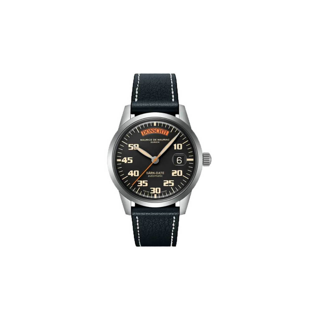 Marke MAURICE DE MAURIAC Modell BÄRN-DATE: Uhrsachen Edition - Limitiert auf 50 Exemplare Referenz MDM.130.BärnDate.UR Dimensionen 39mm Materialien Gehäuse aus satiniertem Edelstahl, schwarzes Zifferblatt mit Sekundenzeiger und Wochentags-Anzeige in UhRSACHEN-Orange, geschützt durch ein blau entspiegeltes Saphirglas, Saphirglas-Sichtboden. Folgende Armbandmöglichkeiten stehen zur Auswahl: Lederband mit Dornschliesse aus Edelstahl, Edelstahl-Milanaiseband mit Sicherheitsschliesse oder Edelstahlband mit Drückerfaltschliesse. Uhrwerk Mechanisches Uhrwerk, ETA-Kaliber 2834 mit automatischem Aufzug Funktionen Anzeige der Stunden, Minuten und Sekunden inkl. Wochentags- und