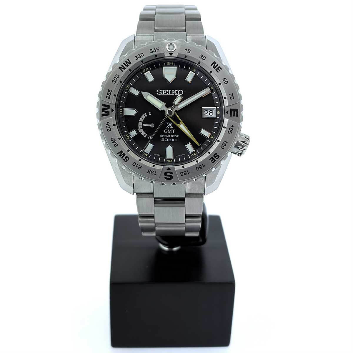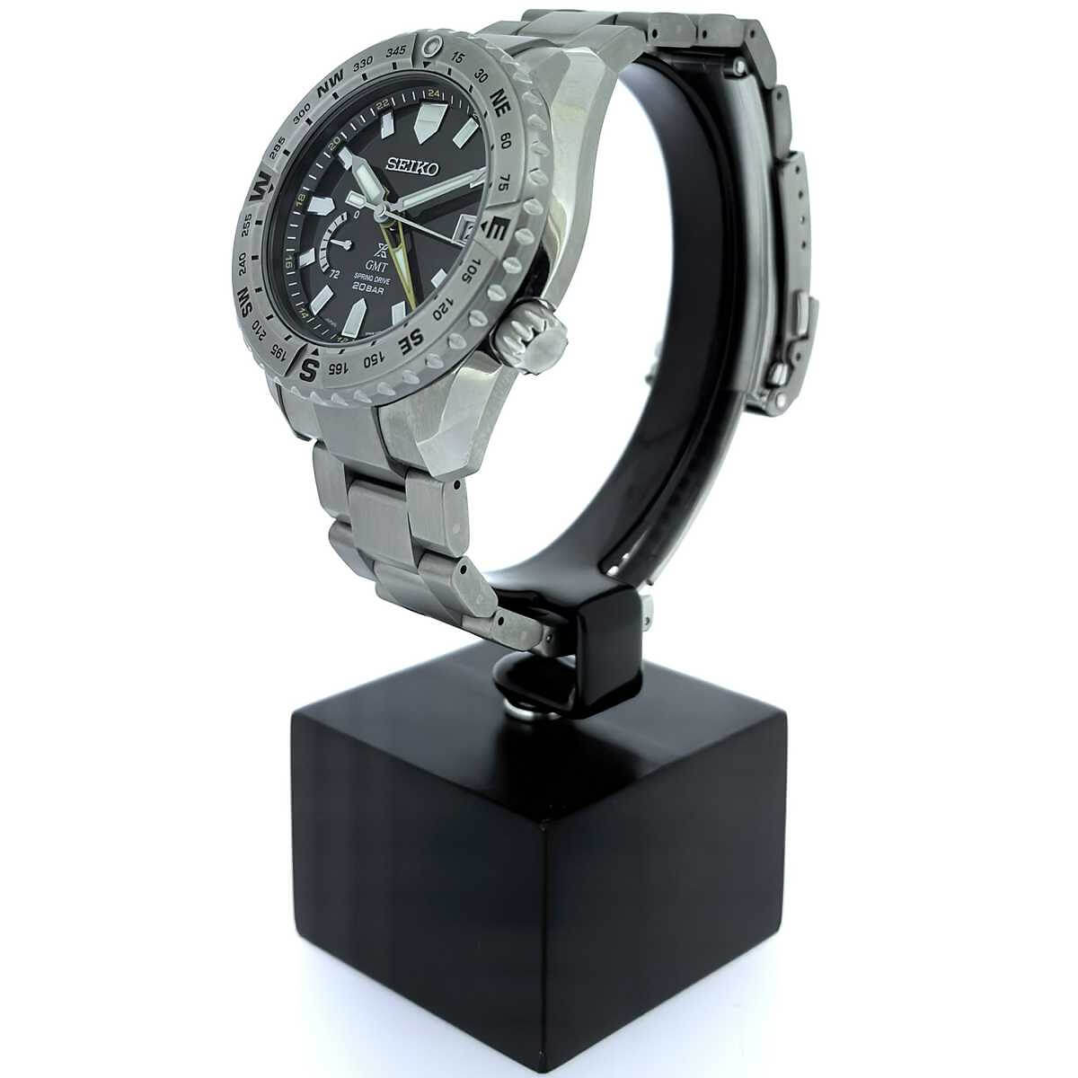 Marke SEIKO Modell Prospex Referenz SNR025 Produktionsjahr 2023 Dimensionen 44mm Materialien Gehäuse und Lünette aus Titan mit Super-Hard-Coating, schwarzes Zifferblatt geschützt durch ein Super-Clear beschichtetes Saphirglas, Titanarmband mit Dreifachfaltschliesse ebenfalls aus Titan Kaliber Mechanisches Uhrwerk, Kaliber 5R66 mit automatischem Aufzug Funktionen Anzeige der Stunden, Minuten und Sekunden inklusive Datums- und Gangreserveanzeige inkl. GMT-Funktion Zustand Neuwertig
