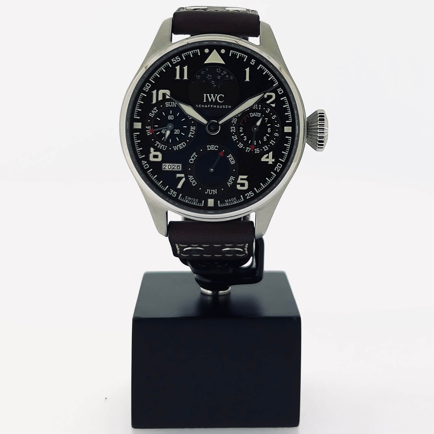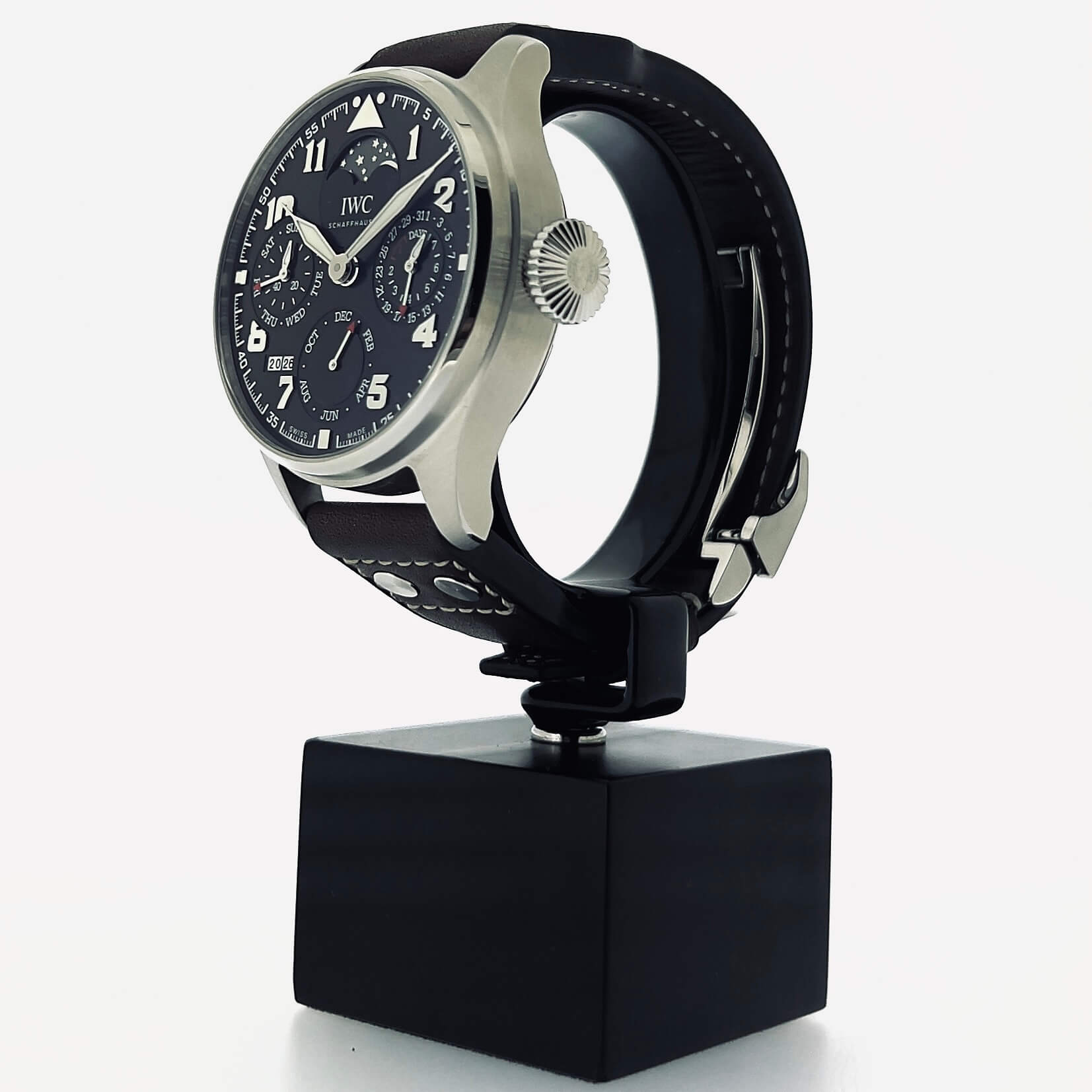 Big Pilot’s WatchThe IWC Big Pilot’s Watch Ref. IW503801 Perpetual Calendar Edition “Antoine de Saint Exupéry” combines the iconic design of a classic pilot’s watch with outstanding mechanical sophistication and a strong historical background. This special edition is dedicated to Antoine de Saint Exupéry, the famous writer, aviator and pioneer of early aviation, whose experiences as a pilot in the 1930s profoundly influenced his literary work. IWC Schaffhausen has been closely connected to aviation since the early twentieth century, and the Big Pilot’s Watch reflects the tradition of cockpit instruments designed for maximum legibility, robustness and reliability.