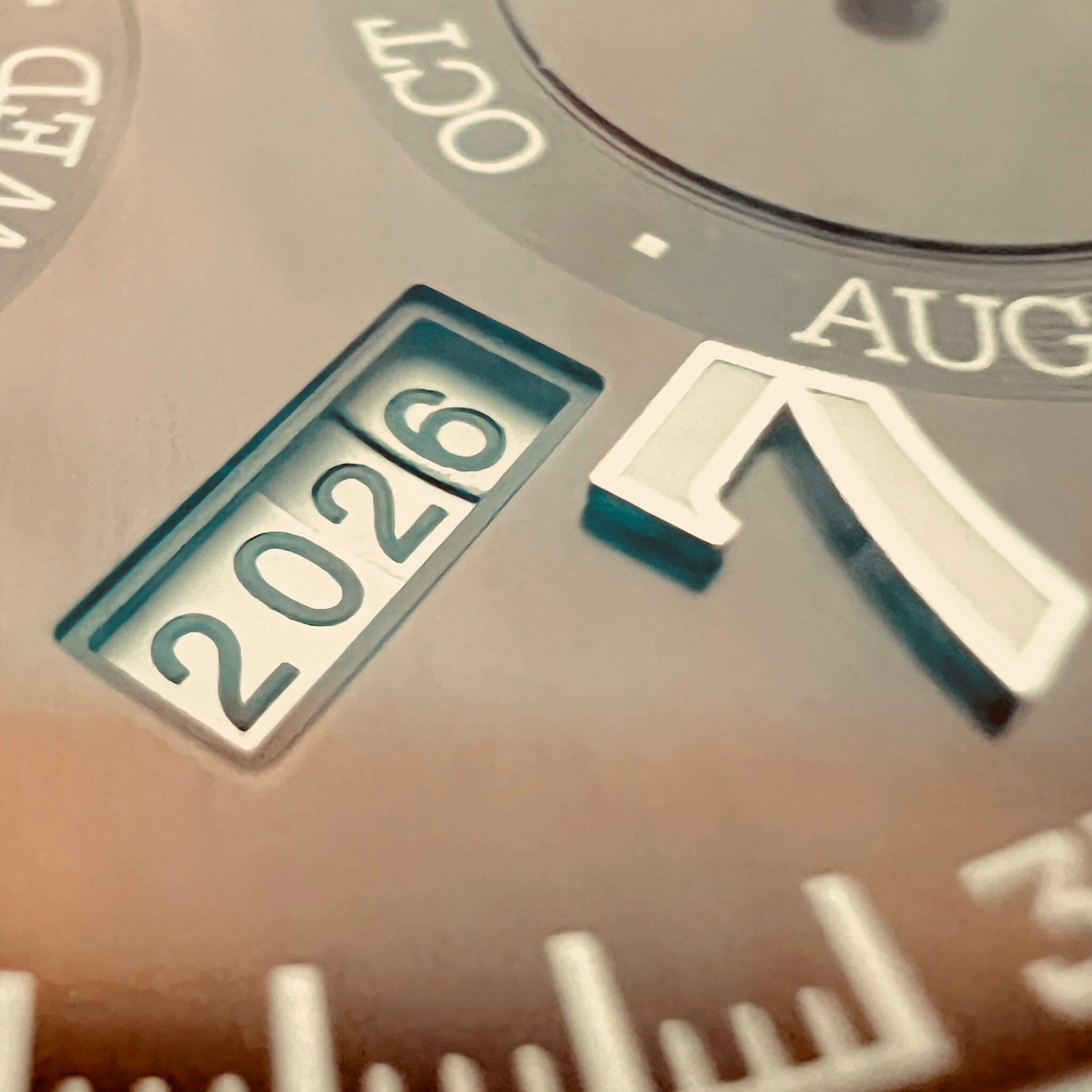Im Inneren der Uhr arbeitet das mechanische Manufakturwerk Kaliber 52610 mit automatischem Aufzug, das einen ewigen Kalender mit Anzeige von Wochentag, Datum, Monat und Jahr sowie eine Mondphase integriert. Das braune Zifferblatt unter entspiegeltem Saphirglas verleiht der Uhr eine warme, elegante Ausstrahlung und harmoniert mit dem Gehäuse aus Edelstahl. Die Uhr ist bis 6 Bar wasserdicht, vorausgesetzt die Krone ist verschraubt. Abgerundet wird das Gesamtbild durch ein braunes Kalbslederband mit Faltschliesse aus Edelstahl, das den historischen Charakter und die fliegerische Tradition dieses aussergewöhnlichen Zeitmessers unterstreicht.