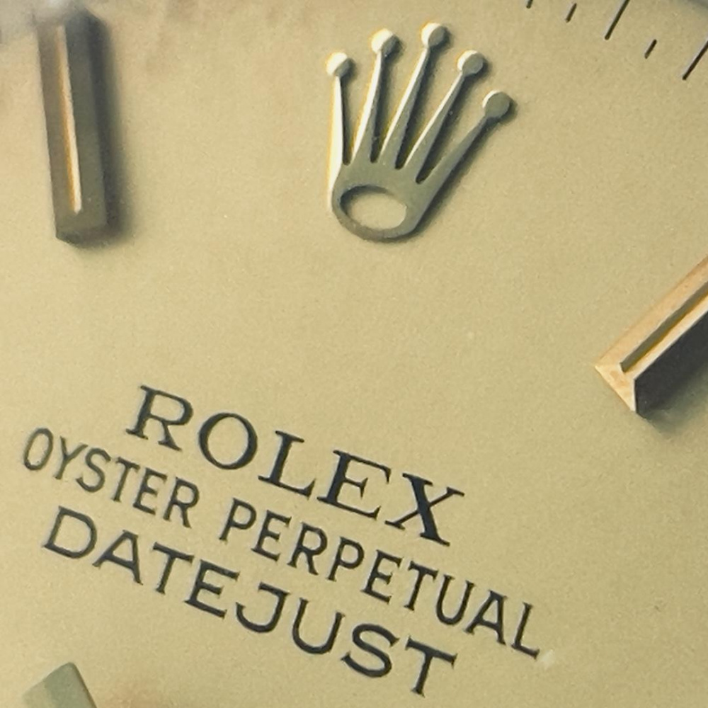 Oyster Perpetual DatejustDiese ROLEX Oyster Perpetual Datejust ist eine elegante und vielseitige Uhr, die Rolex' legendäre Handwerkskunst perfekt widerspiegelt. Sie kombiniert ein 36 mm Edelstahlgehäuse mit einer 18K Gelbgold-Lünette, was ihr den charakteristischen "Rolesor"-Look verleiht – eine edle Mischung aus Edelstahl und Gold. Das vergoldete Ziffernblatt mit römischen Ziffern sorgt für eine (erst)klassische, zeitlose Ästhetik. Angetrieben vom zuverlässigen Kaliber 3135 mit Datumschnellschaltung, bietet die Uhr eine Gangreserve von etwa 48 Stunden und eine präzise Datumsanzeige bei 3 Uhr. Das robuste Oyster-Armband aus Edelstahl und 18K Gelbgold sorgt für Komfort und Langlebigkeit. Mit einer Wasserdichtigkeit von 100 Metern ist die Datejust 16233 sowohl für formelle als auch für alltägliche Anlässe geeignet und steht für exzellente Qualität und Stil.