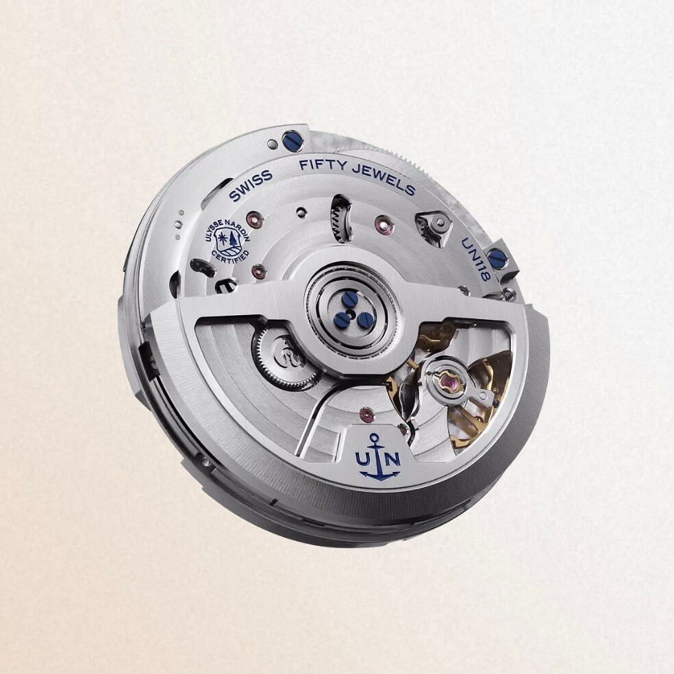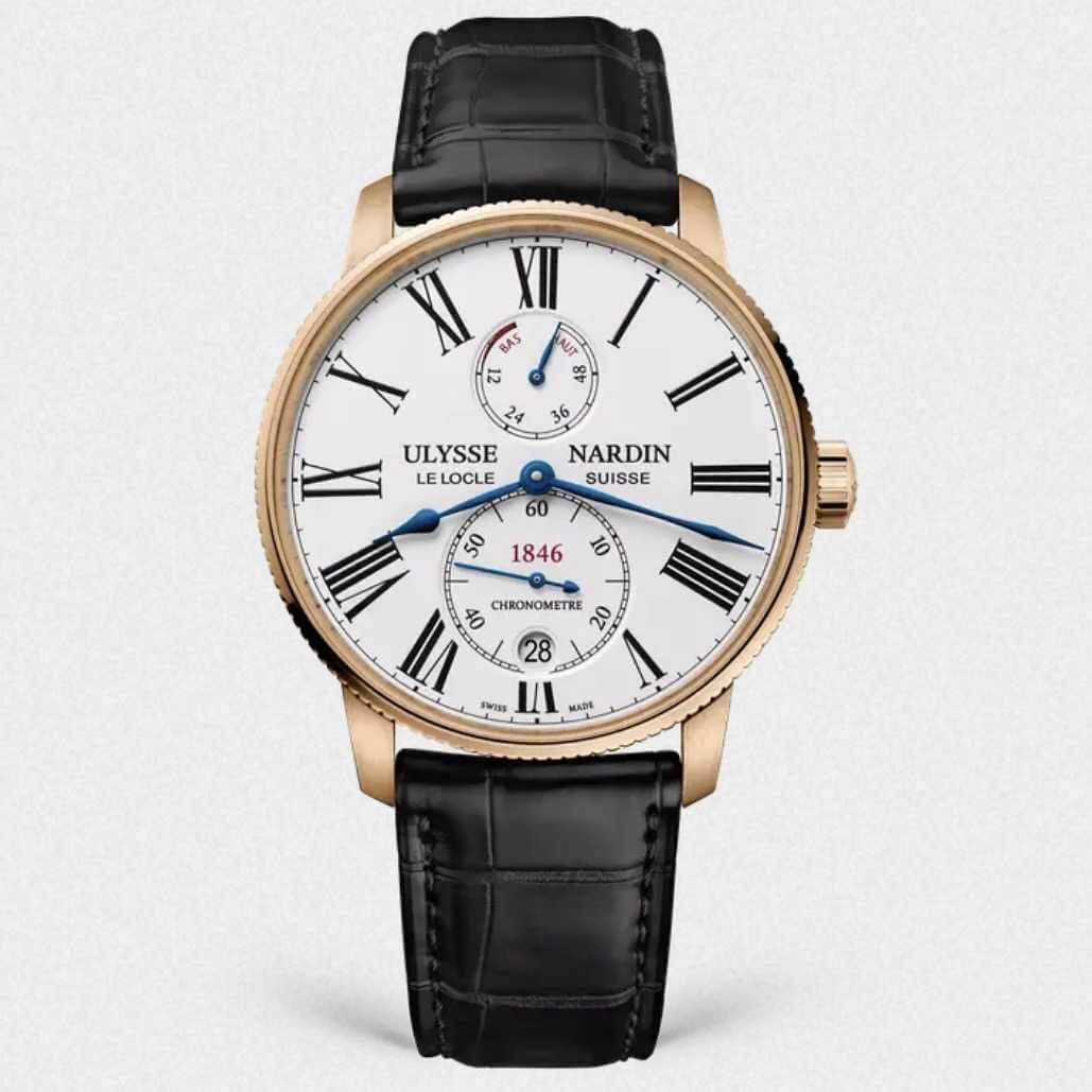 Marine TorpilleurThe Ulysse Nardin Marine Torpilleur in 18-carat rose gold is inspired by the brand’s first marine chronometers. It embodies the technical precision and craftsmanship that have always defined Ulysse Nardin. As part of the Marine collection, it continues the brand’s long-standing tradition, which began in the 19th century with the creation of highly accurate timepieces for maritime navigation. This gold wrist chronometer combines traditional marine aesthetics with modern watchmaking technology, evident in the silicon components of the UN-118 caliber. The dial recalls the look of historic ship chronometers, while the automatic UN-118 movement with silicon escapement ensures outstanding accuracy — an area in which Ulysse Nardin has long been a pioneer. Since its founding in 1846 in Le Locle, the manufacture has produced numerous marine chronometers for international navies. This expertise remains the foundation for models like the Marine Torpilleur — a tribute to the enduring link between precision, functionality, and maritime heritage.