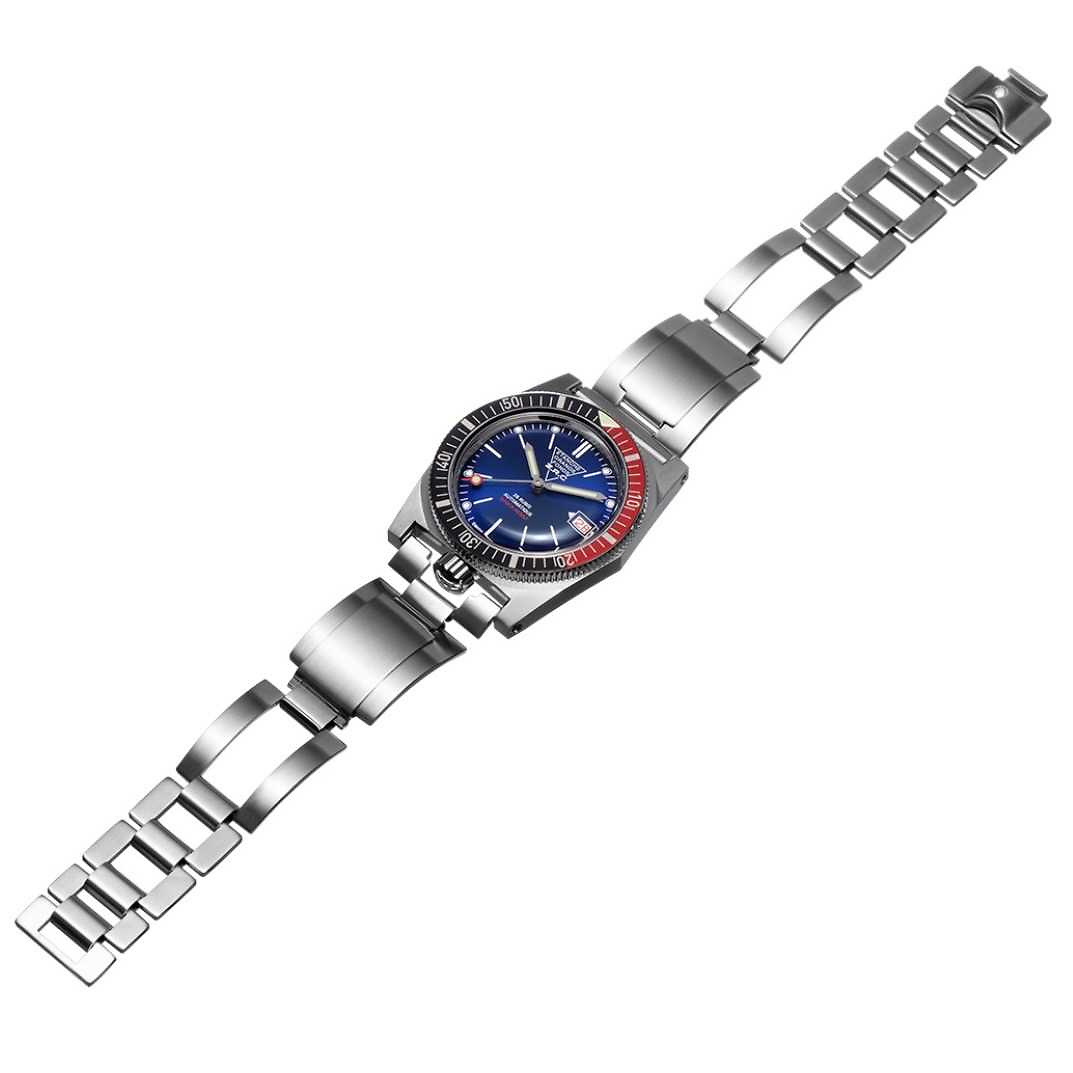 Die Referenz GF38298 ist für alle Arten von Abenteuern gerüstet. Die einseitig drehbare Lünette mit präziser Skala, der Timer und die Datumsanzeige machen diese Taucheruhr zu einem unverzichtbaren Begleiter für Ihren Alltag. Dank ihrer Vielseitigkeit ist sie sowohl an Land als auch unter Wasser zu Hause. Dank ihrer harmonischen Proportionen passt sich die Grands Fonds® S3 sowohl an männliche als auch an weibliche Handgelenke an. Wie bei allen Grands Fonds®-Uhren profitiert das moderne Design des Gehäuses von den Erkenntnissen der Forschung über die programmierte Verformung von Materialien, um eine hervorragende Wasserdichtigkeit zu gewährleisten. Das ECS ™ ist eine technische Lösung für ein Problem, mit dem sich die Minentaucher der Marine Nationale während ihrer vielen Tauchgänge befassen: Salz kristallisiert in den Zwischenräumen zwischen der Lünette und dem Gehäuse und behindert so dessen Rotation. Für die Neuauflage des Grands Fonds 300 im Jahr 2015 hat ZRC eine funktionale Lösung entwickelt und patentiert – das ECS™. Es ist dies ein einzigartiges System zur Reinigung des Inneren der Frontblende durch zirkulierendes frisches Wasser, welches das Meersalz verdünnt und gleichzeitig abführt. Dank dieses exklusiven Bandsystems mit einziehbaren Ösen ist 100%-ige Sicherheit garantiert. Dadurch wird es verunmöglicht, die Uhr im Wasser zu tragen, ohne dass die Krone wieder in ihre ursprüngliche Position verschraubt ist. Dies wird dadurch ermöglicht, dass sofern die Krone nicht sicher verschraubt sein sollte, das Band nicht richtig positioniert werden kann und ein Tragen der Uhr verhindert wird. Diese effektive Methode garantiert nicht, dass die Uhr in unverschraubtem Zustand nicht getragen werden kann, sondern zugleich auch, dass sich die Krone in getragenem Zustand nicht lösen kann.